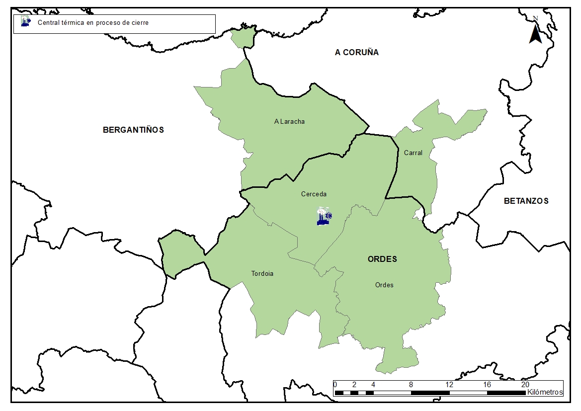 La delimitación del ámbito territorial del Convenio de Transición Justa de Meirama incluye estos 5 municipios: Carral, Cerceda, A Laracha, Ordes y Tordoia.